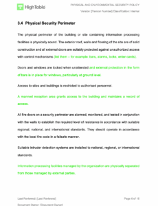 Physical And Environmental Security Policy Template