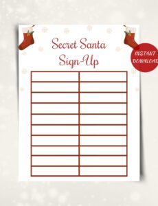 Secret Santa Sign Up Sheet Template