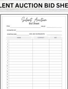 Silent Auction Sign Up Sheet Template