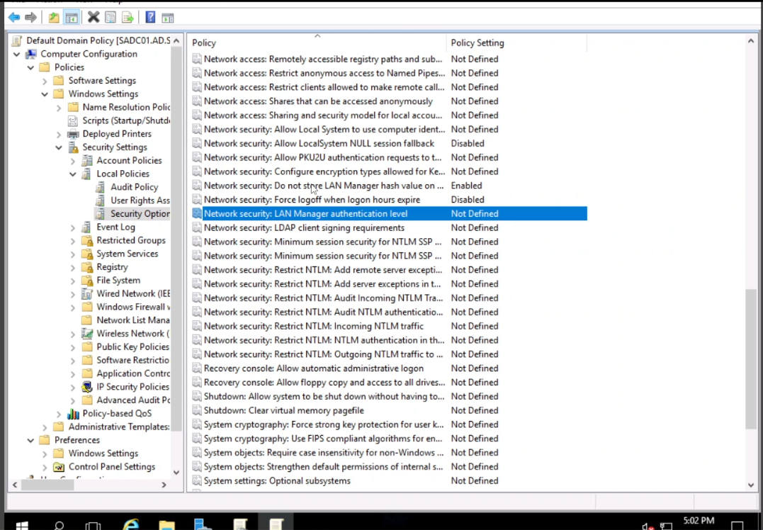 - Security Options: Configuring various system behaviors such as interactive logon messages, network access restrictions, and administrative sharing settings.