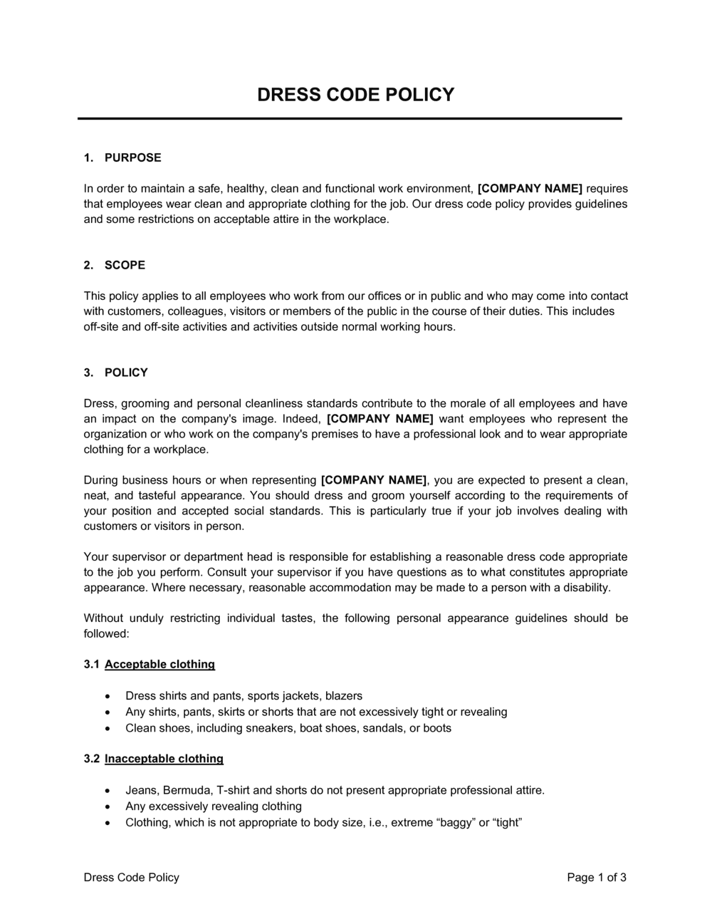 - Policy Exceptions: Circumstances under which the dress code might be relaxed (e.g., dress-down Fridays, company events).