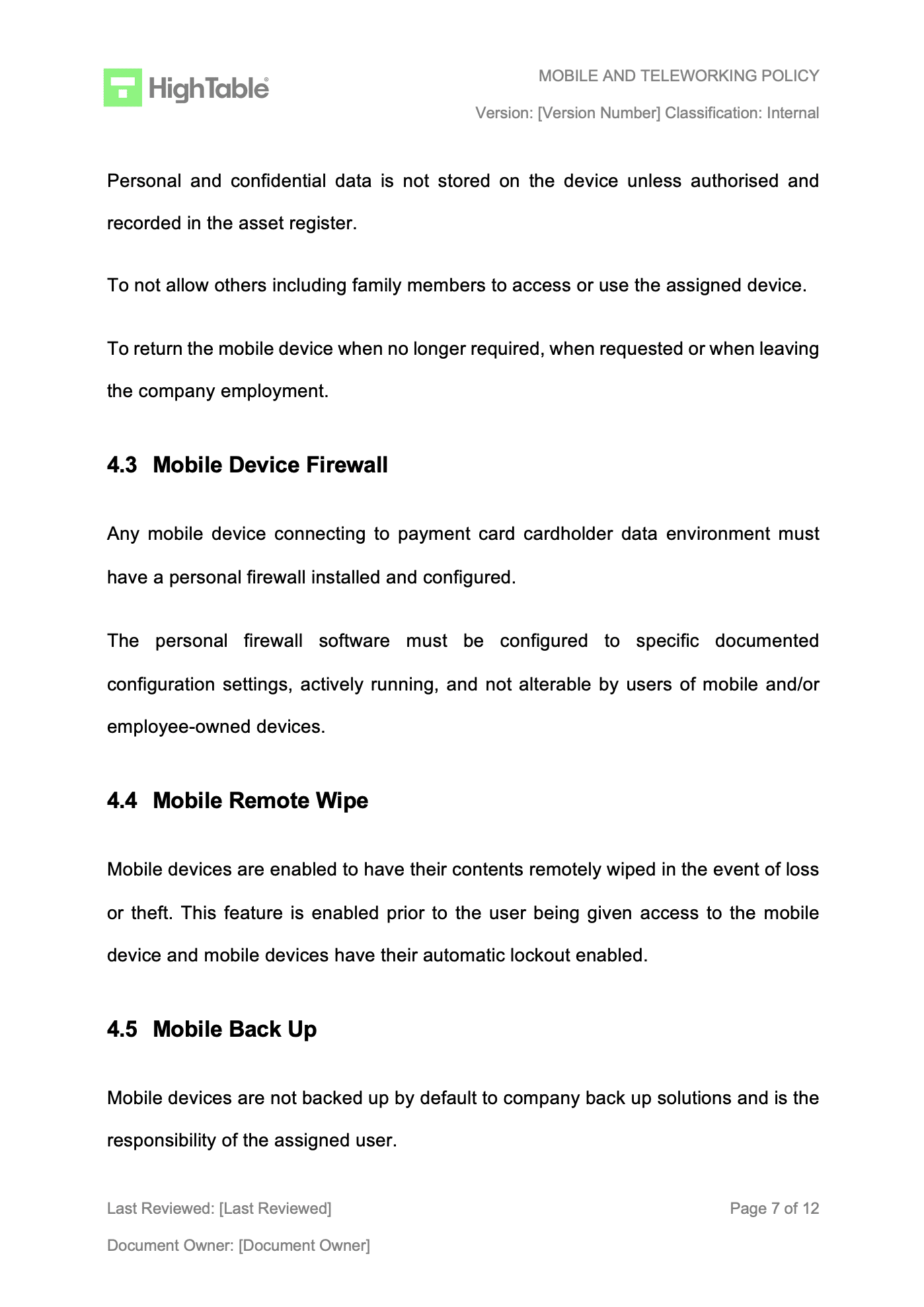- Link to Other Policies: Ensure your mobile device policy integrates seamlessly with other relevant information security policies, HR workplace rules, and acceptable use agreements. Consistency across all your documentation strengthens your overall compliance posture.