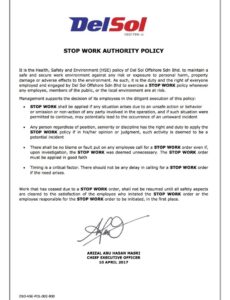 Stop Work Authorization Policy Template