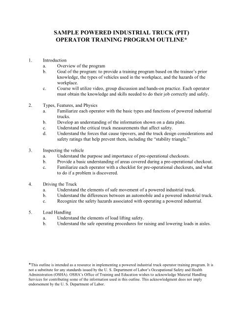 - **Program Scope and Policy Statement**: Clearly defines the purpose of the program, its applicability to all types of PITs and personnel, and the company’s unwavering commitment to *material handling equipment safety*.