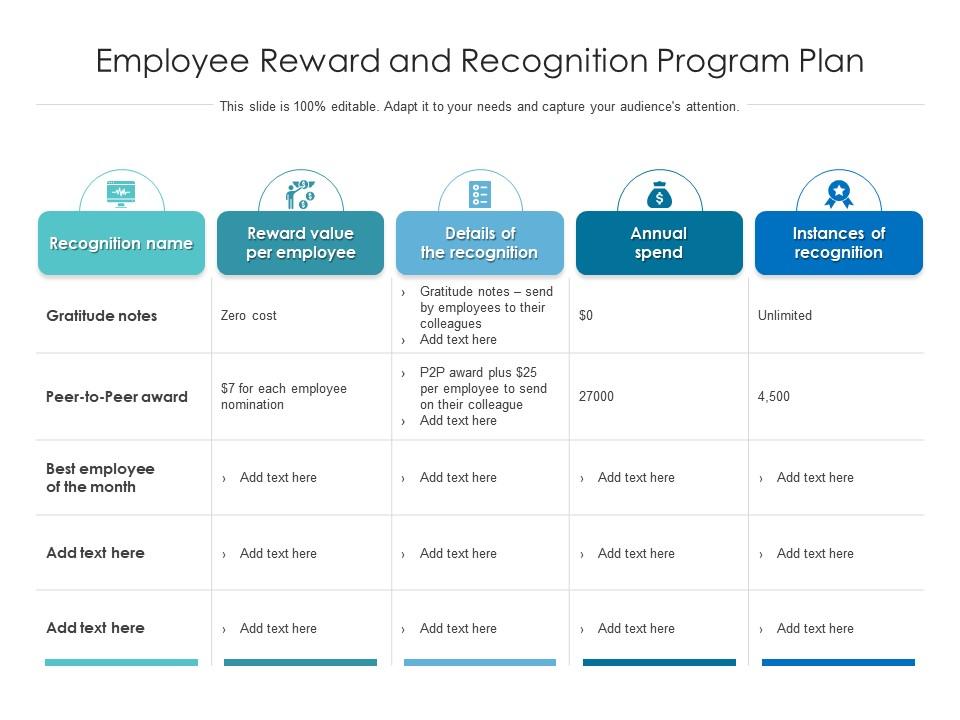 - Budget Allocation: Determine financial resources for both monetary rewards (bonuses, gift cards) and non-monetary recognition (trophies, experiences, development opportunities).