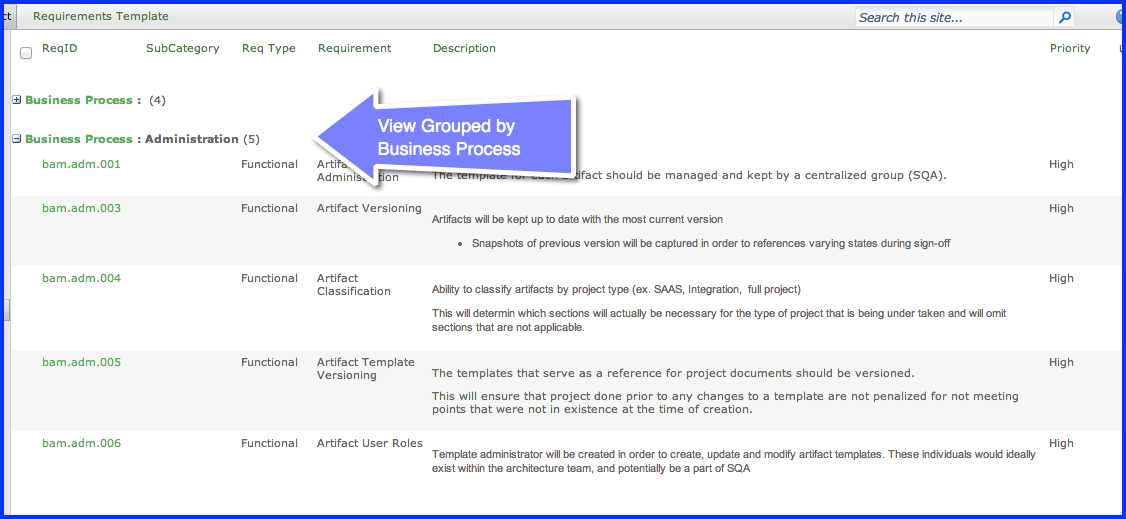 - **Use Cases/User Stories Library:** A document library to house more elaborate use case specifications or user stories, linking them back to individual requirements in the list.